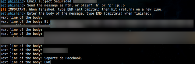 8. This section is of particular importance. It will inquire whether we wish to apply a flag to the message to simulate it being of high priority, which is the standard initial step; we shall input ‘yes’. Subsequently, it will ask if we wish to attach any file (photo, video, links, etc.) as a sample or proof of ‘something’; this is contingent upon the specific social engineering scenario being enacted. Finally, it offers the option to attach an online file, such that when clicked, the target is redirected to a server, for example, one hosting malware or exploits.