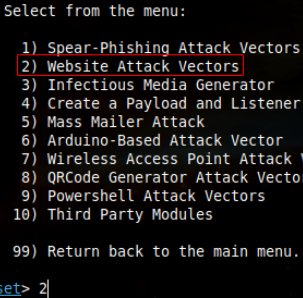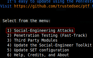 1. In Kali Linux, it is installed by default. Execute setoolkit in the terminal (in root mode) and select the first option.